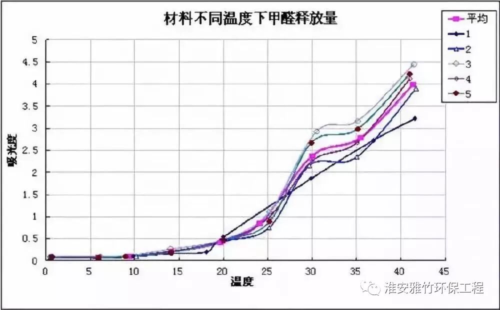 结果表明,室内游离甲醛释放量与温度呈正比关系。当温度高于25℃时,甲醛的释放量会明显增加。