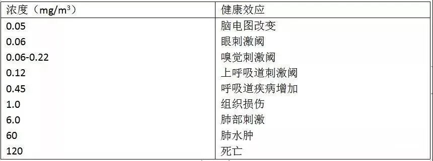 不同甲醛浓度的健康效应如下:
