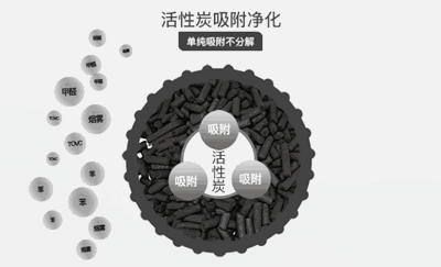 利用活性炭或炭纤维表面的高比表面积对空气中有害化学气体进行化学吸附,从而达到净化化学污染物的目的,对室内的挥发有机物和异味的净化有一定效果。