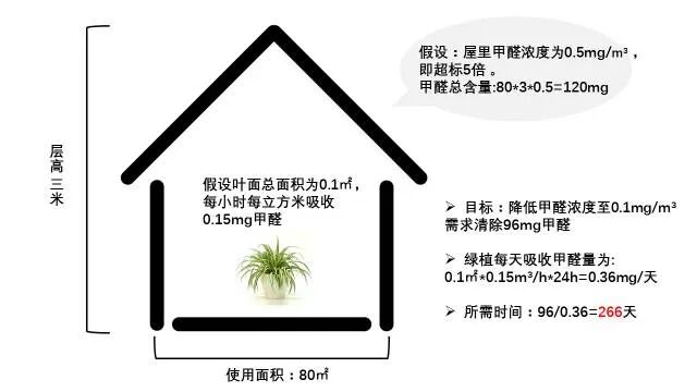 上图显示需要266天,还是在理想的实验情况下!房子面积再大一点,甲醛浓度再高,需要的时间会更长…把家里的绿植摆成一摞一摞的倒是有可能缩短时间,但是你的家很可能就会变成“植物园”的画风。这样家里的湿度也是不可想象的,在家里摆上一两盆绿植,大部分就是起到“心理安慰”的作用。