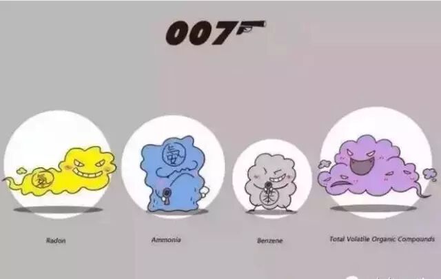 也许大家都听过我,却没听我另外4个小弟,它们分别是:TVOC、苯、氨、氡。因为我最难对付,所以经常抢了它们的风头,我本人是很无奈的。